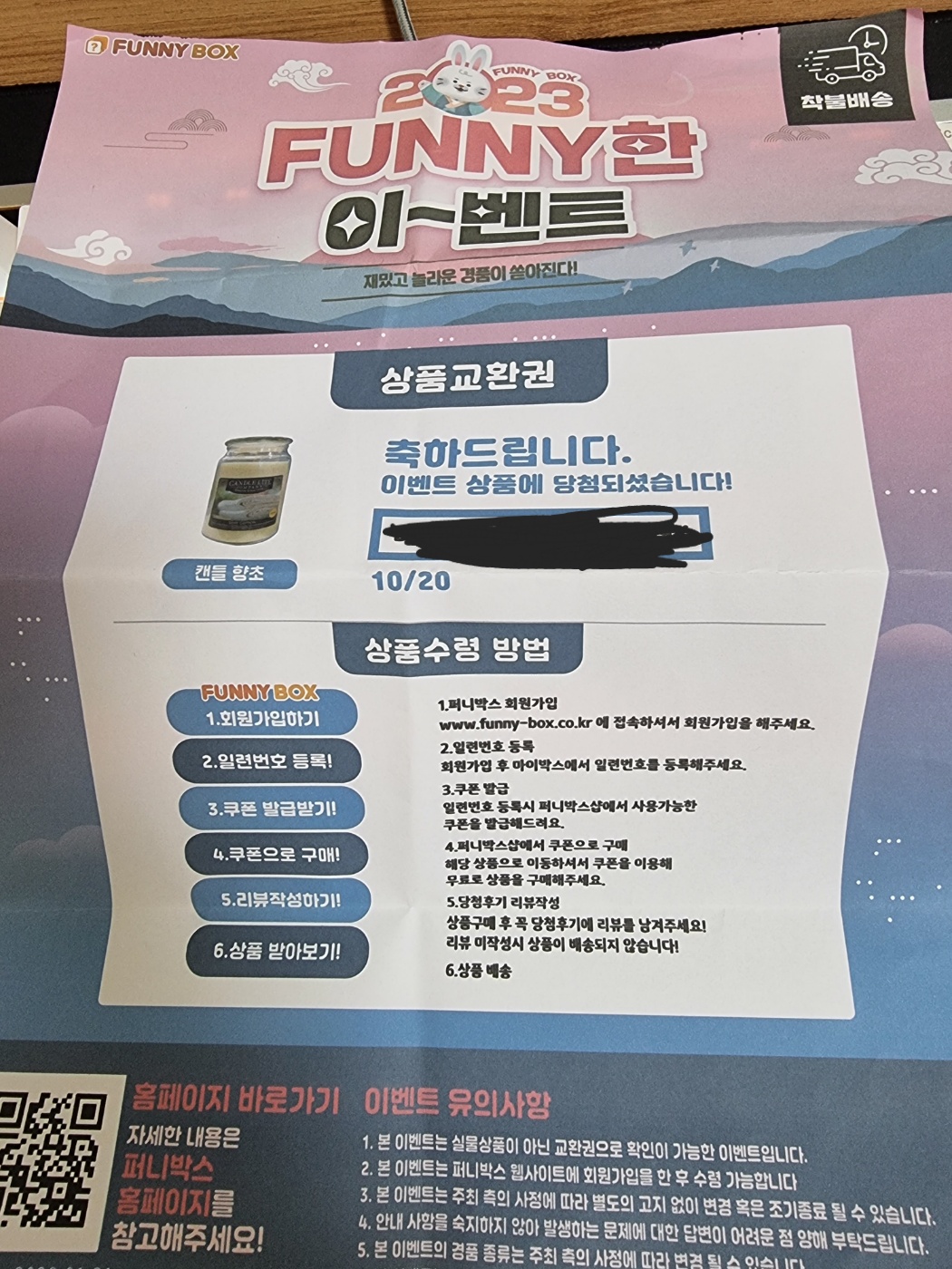 당첨 후기 페이지 정보 본문 정말 정말 오랜만에 롯데월드 갔다가 재미로 한번했는데 당첨됐어요! 감사합니다~ 이전글당첨후기 23.03.24 다음글당첨! 23.03.18 목록 댓글 0 댓글목록 등록된 댓글이 없습니다.