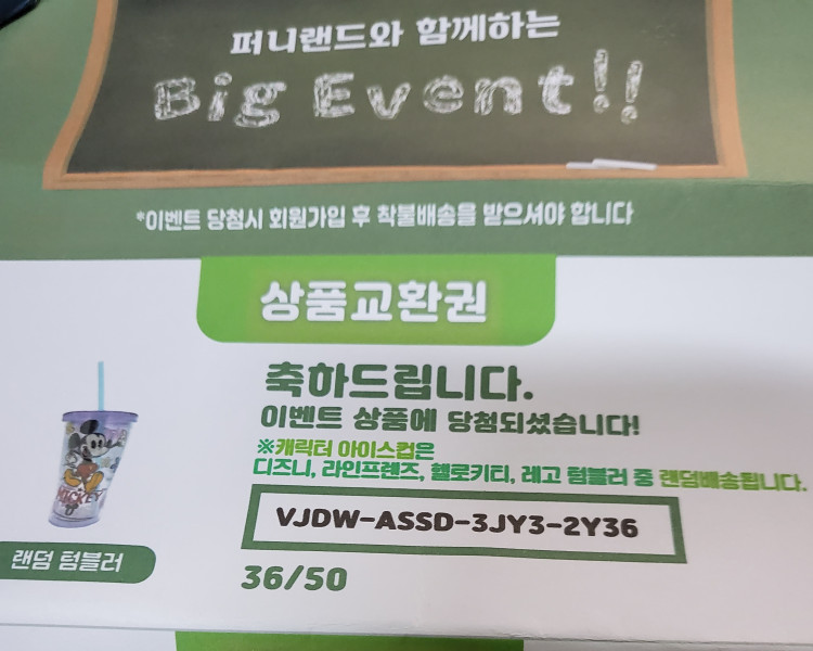 영화보고 아이와함께 퍼니박스했어요. 텀블러 당첨 됐었네요. 빨리 배송부탁드려요-^^