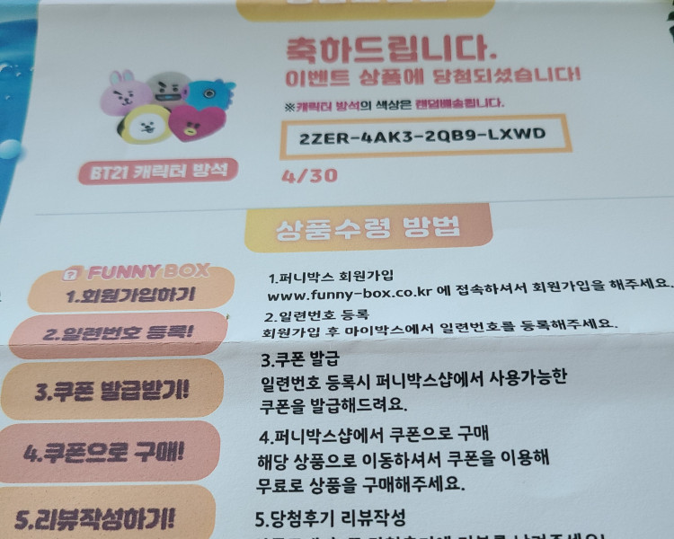아무 생각없이 김해 장유 아울렛 갔다가 당첨 안그래도 필요했는데 5천원에 득템