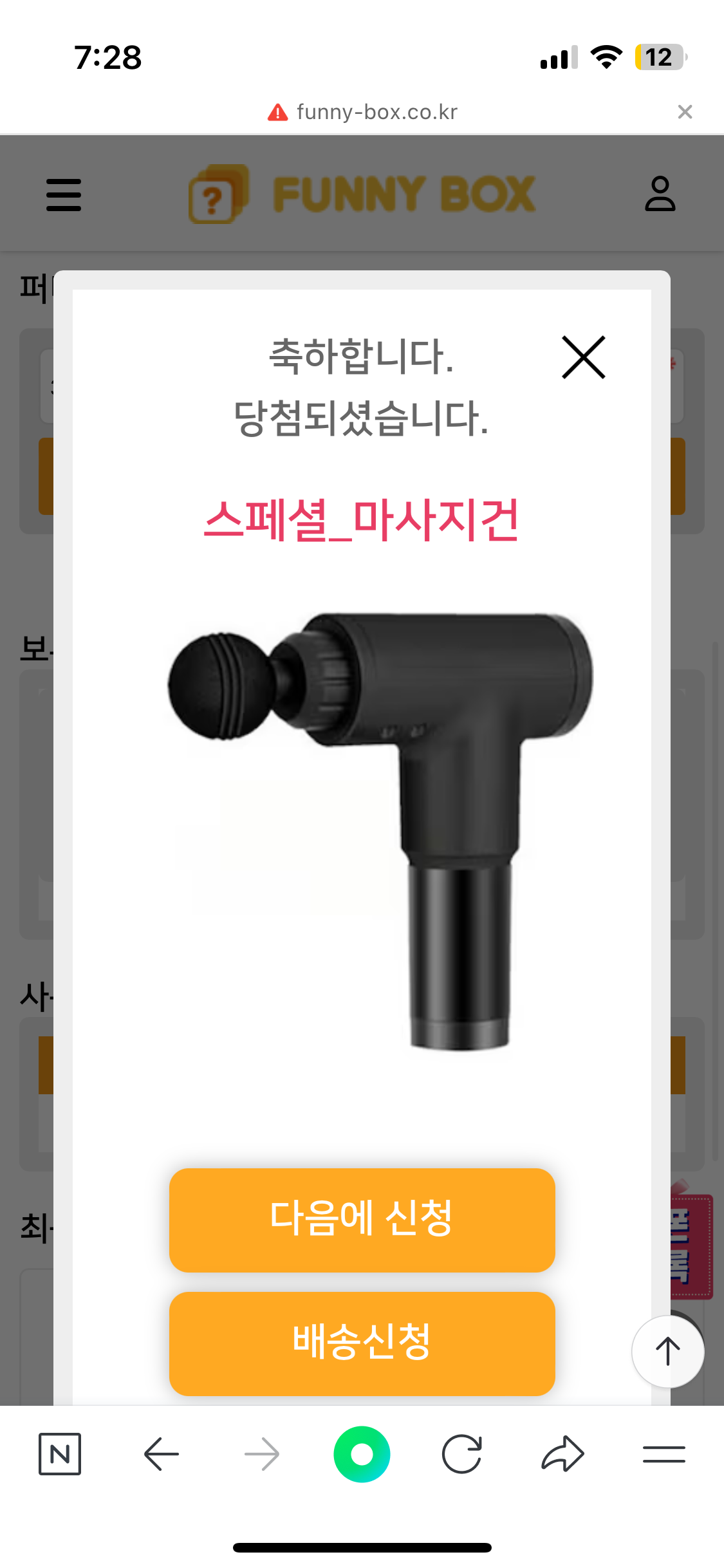 당첨 후기요 페이지 정보 본문 아들이 당첨됐네요 역시 효자네요 마사지건은 제가 사용하는걸로.. 이전글당첨 후기입니다. 24.05.15 다음글당첨입니다!! 24.05.15 목록 댓글 0 댓글목록 등록된 댓글이 없습니다.