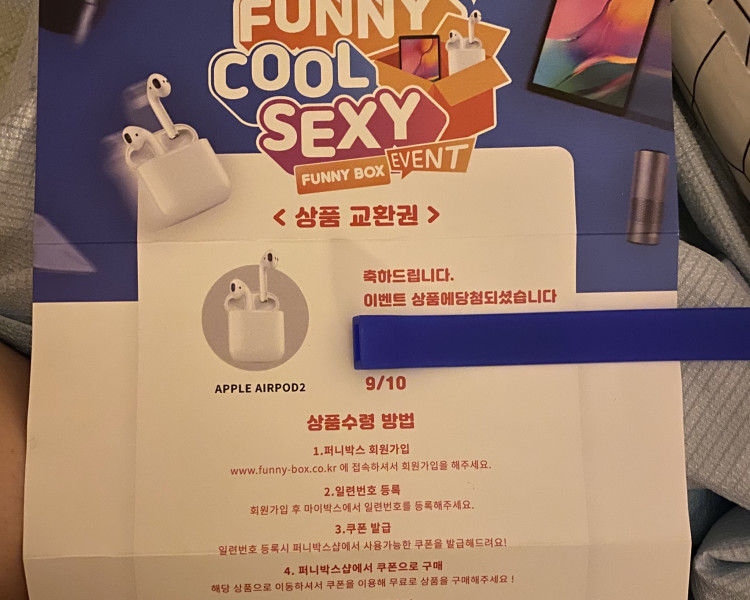 전국에 10개뿐이 에어팟 당첨 ! 9/10 이네요 잘쓸게요 !!!!!!!!!!!!!!!!